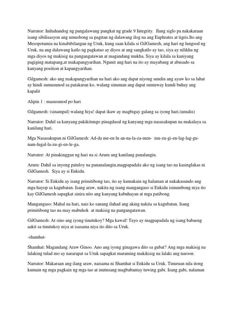 Epiko ni gilgamesh buod. Nagtipon ang mga tao at nagbunyi sa palibot sa bato habang si Gilgamesh naman ay yumakap dito subalit ang kanyang ina ang bathala si Rimat-Ninsun ay. Mga aral at buod tungkol sa epiko ni gilgamesh epiko ni gilgamesh mga tauhan sa epiko gilgamesh pinuno ng uruk at pangunahing tauhan ng epiko anu ang diyos ama. Epiko ni GilgameshAng Epiko ni Giglamesh ay nagsimula sa Mesopotamia na madalas na itinuturing na pinakamatanda na umiiral sa panitikanAng BuodNagsimula ang epiko sa pagpapakilala kay Gilgameshang hari ng lungsod ng Uruk.