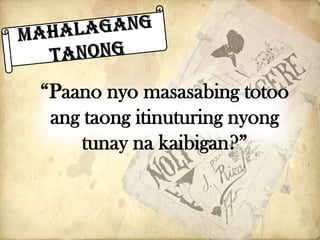 Characters of Noli Me Tangere Reported by. Noli Me Tangere Buod Kabanata 60. Siya ay sagisag ng mga Pilipinong nakapag-aral na.